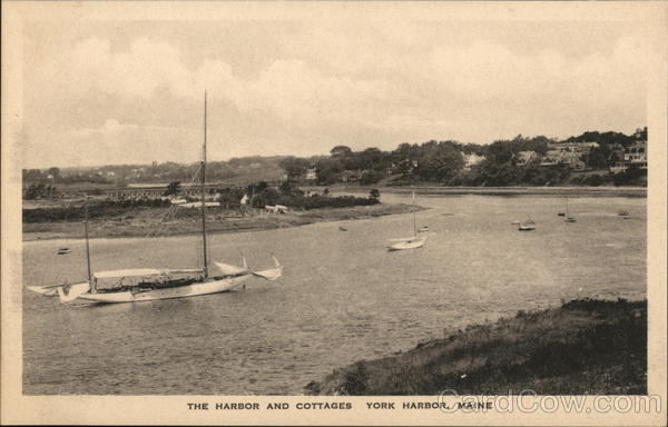 Front: THE HARBOR AND COTTAGES YORK HARBOR, MAINE Back: PUBLISHED BY DR. HAWKES' PHARMACY, YORK HARBOR, MAINE PT 3 7 75