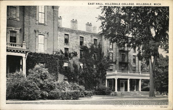 Front: EAST HALL, HILLSDALE COLLEGE, HILLSDALE, MICH. 121349 Back: SINAVUSE POSTA Hillsdale cht FRANKLIN CTAMERICAN ART 106-28 8. ад come, Regents , kha BLACK AND WHITE ich A Long Sealine TEO Buscher Badeo