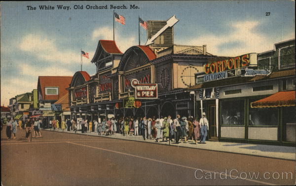 Front: The White Way, Old Orchard Beach, Me. GORDOTS DELAITESSEN WAY WHITELAY & PIER NITEK 27 Back: MADE IN U, S. A کی PT 3 *TICHNOR QUALITY VIEWS" REG. U.S. PAT, OFF. MADE ONLY BY TICHNOR BROS., INC., BOSTON, MASS, 70119