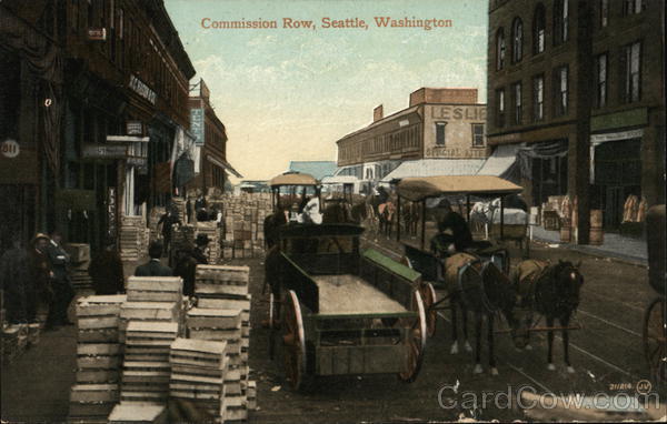 Front: 811 JOBST Commission Row, Seattle, Washington TA FO LESLIE SPECIAL ATTE tam nies 21 211214. (JV) Back: Published by The Valentine & Sons' Pub. Co., Ltd., New York, Boston, and Atlanta THROUGHOUT THE WORLD. Correspondence, V& SONS CARD. FAMOUS