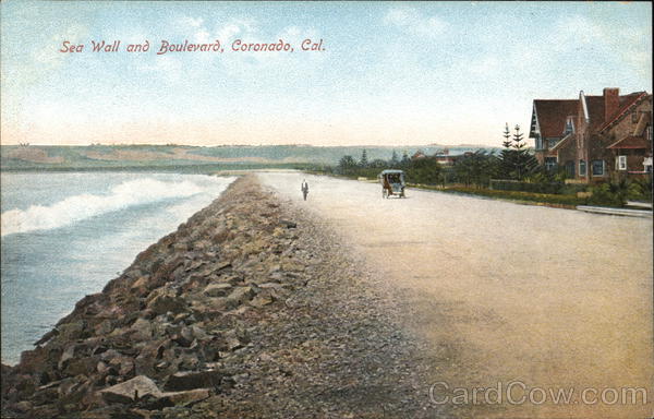 Front: Sea Wall and Boulevard, Coronado, Cal. NO Back: No. L. 114. Publ. by Newman Post Card Co., Los Angeles, Cal. Made in Germany. Write message here. M........ Island Mexican 1c Foreign 2 c 67930