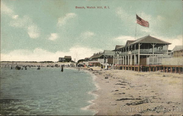 Front: Beach, Watch Hill, R. I. 只要你 Back: Published by The Rhode Island News Company, Providence, R. I. No. D 4541 CHR NEWYO AROMA N. LEIPZIG DRESDEN BERLIN United States and Island Possessions. Cuba, Canada and For all other Countries 165431