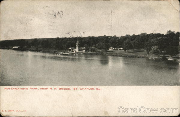 Front: POTTAWATOMIE PARK, FROM R. R. BRIDGE, ST. CHARLES, ILL. E. C. KROPP, MILWAUKEE Back: CHARLE Past banks AINT LL Zo LEGETES SERIEN 1902 INITED STATES OF 1706 FRANKLIN 190 ORG Mildred McNeill. Borkville Cönne.