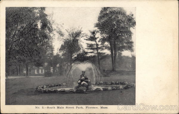 Front: LO 14 No. 3.-South Main Street Park, Florence, Mass. AJAN Back: ! ↓ d Mildred R. McNeill Rockville Conn. POSTAL HERE.