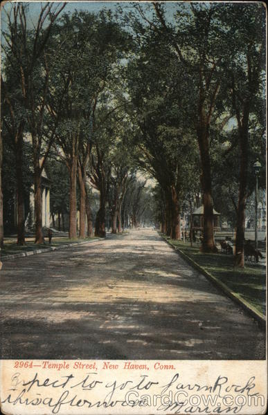 Front: 2964-Temple Street, New Haven, Conn. expect to go to faven Rock this afternoon. Marian Back: Souvenir Post Card Co., New York and Berlin. HAVEN JUL 22 28 AM JOS Vo ANEPIECA 1206 FRANKLIN 1290 Miss Mildred McMull Talcott Ave. Rockalle