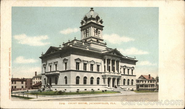 Front: COPYRIGHT, 1904, BY DETROIT PHOTOGRAPHIC CO. 11 inf ii 7509. COURT HOUSE, JACKSONVILLE, FLA. ¡¡ Back: 150 AND CANADA, FOREIGN, Two CENTS.