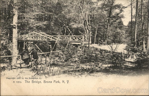 Front: Copyright 1905 by the Rotograph Co. A 105 b. The Bridge, Bronx Park, N, D. Back: The Rotograph Co., N. Y., City. (Germany.) RINT SAMANAV Two cents
