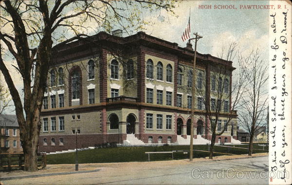 Front: 388 *** ********* I his to the School I went to for about Jਰ ਅਜ਼ ਬਰਖ HIGH SCHOOL, PAWTUCKET, R. I. Back: A. C. Boaselman & Co., New York, 250 One Cent for United States, and Island Possessions, Cuba, Canada and For Foreign.