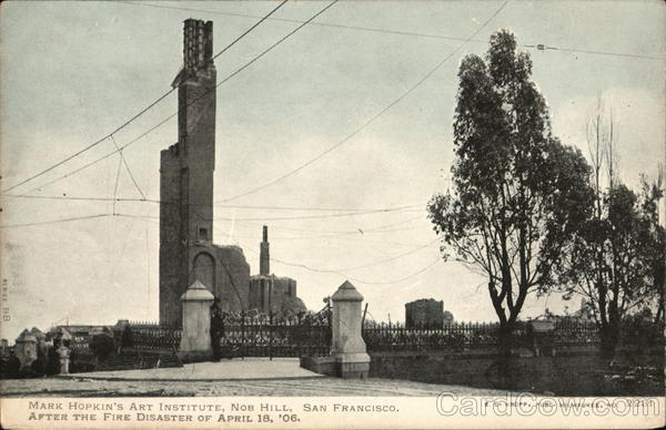 Front: SERIES B8 MARK HOPKIN'S ART INSTITUTE, NOB HILL, SAN FRANCISCO. AFTER THE FIRE DISASTER OF APRIL 18, '06. E. C. KROPP, PUBL. MILWAUKEE. NO. 2231 Back: Post Gard $1.- TWO CENTS