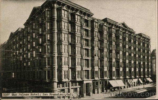 Front: 3207 The Palace Hotel, San Francisco, Cal. V Back: Adolph Selige Pub Co., St. Louis, Mo. 50¢ CARTE POSTALE ---- POSTAL CARD 1 Cerr Domes¹.c 2 Cent- Foreign
