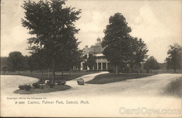 Front: Copyright 1904 by the Rotograph Co. A 3836 Casino, Palmer Park, Detroit, Mich. Back: The Rotograph Co., N. Y., City. (Germany,) PRINT 1,56 Two cents