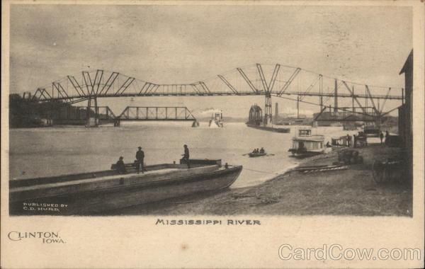 Front: PUBLISHED BY C.D. HURD, CLINTON, IOWA. MISSISSIPPI RIVER Lay Back: Domestic 1 Ct. Foreign 2 Cts. THE ALBERTYPE CO.! BROOKLYN, N.Y.