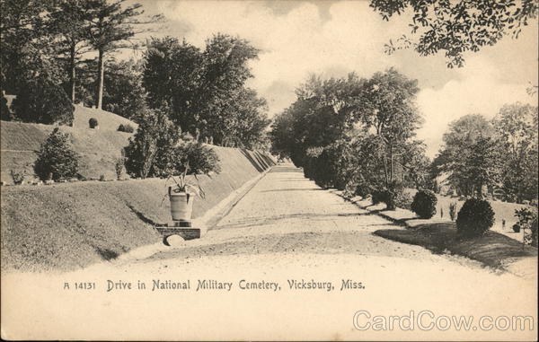 Front: A 14131 Drive in National Military Cemetery, Vicksburg, Miss. Back: The Rotograph Co., N. Y., City. (Germany.) 50% Two cents