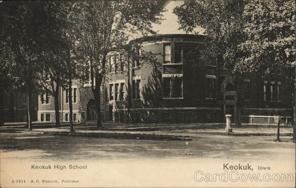 Front: 11 Keokuk High School A 5211 S. C. Westcott, Publisher TH Keokuk, Jowa Back: Germany. S. Langsdorf & Co., New York. S. 1595 Two cents