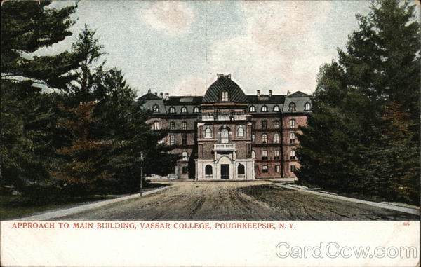 Front: 2011 APPROACH TO MAIN BUILDING, VASSAR COLLEGE, POUGHKEEPSIE, N. Y. 694 Back: A. C. Bosselman & Co,, New York. 156 One Cent for United States, and Island Possessions, Cuba, Canada and For Foreign.