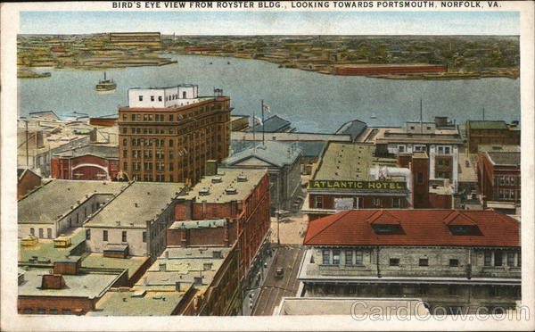 BIRD'S EYE VIEW FROM ROYSTER BLDG., LOOKING TOWARDS PORTSMOUTH, NORFOLK, VA.