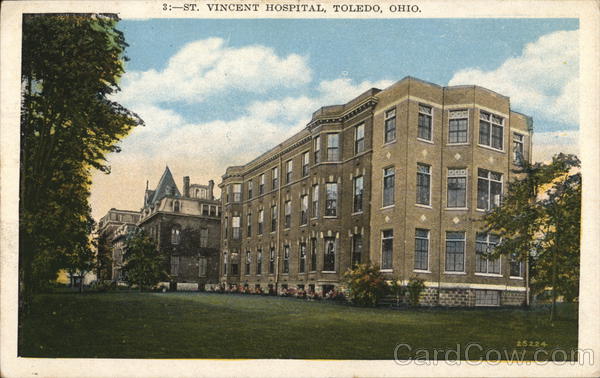Front: 3: ST. VINCENT HOSPITAL, TOLEDO, OHIO. Jal >> 25224 Back: Pub. by Toledo Post Card Co., Toledo, Ohio. HADEMUSA Place the Stamphere and Island Possessions Cuba, Canada and for foreign.