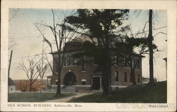 Front: RE OLD SCHOOL BUILDING, Baldwinville, Mass. #7 1110 Hand Colored Back: A. M. SIMON, 117-119 East 24th St., N. Y. G