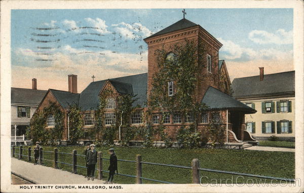 Front: AS HOLY TRINITY CHURCH, MARLBORO, MASS. Ah LITTTTTTTTTTTT 1 Back: Hello. SEP 30 8-PM 19.C. ma. 16 A-63145 Bo CHICAGO Mrs. F. E. Kelly Westimuster Mars.