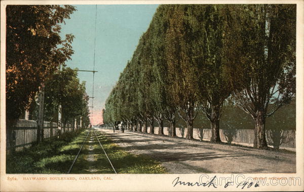Front: 8562. HAYWARDS BOULEVARD, OAKLAND, CAL. march o DETROIT PUBLISHING CO, 5 1906. Back: AND CANADA, FOREIGN, Two CENTS.