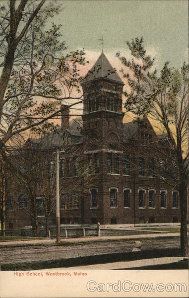 Front: High School, Westbrook, Maine 300000 Back: Published in Germany by G. W. Morris, Portland. Maine. JULY 28. 1906 4. Place the StampHere One Cent for United States and Island Possessions, Cuba, Canada and for Foreign. 009 90721