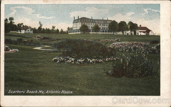 Front: Scarboro Beach Me, Atlantic House. 000000 Back: H.C.Leighton Co, Portland,Me. Manufacturers of Poslal Cards. Made in Germany. №:990. رہے One Cent for United States, and Island Possessions, Cuba, Canada and For Foreign. 046