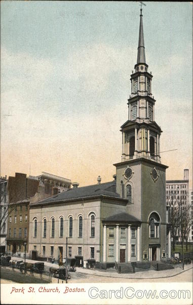 Front: Tim Ja 11 Park St. Church, Boston. Back: 6845. The Metropolitan News Co., Boston, Mass. Manufacturers of Souvenir Postal Cards. Printed in Germany. TWO CENTS
