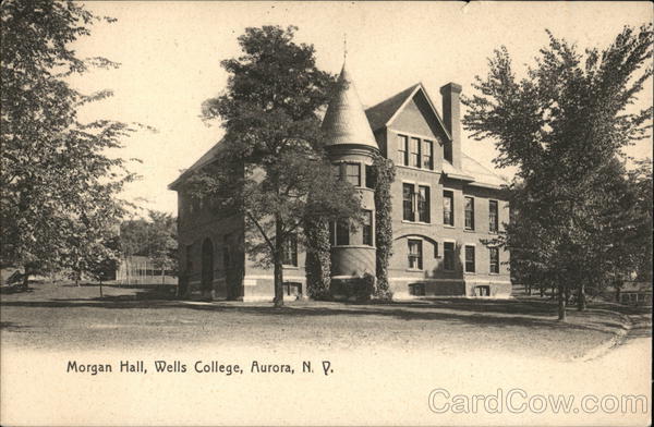 Front: Morgan Hall, Wells College, Aurora, N. P. 333 נויה Back: Published by Henry Morgan, Aurora, N. Y. (Germany). 51507 75 Two cents