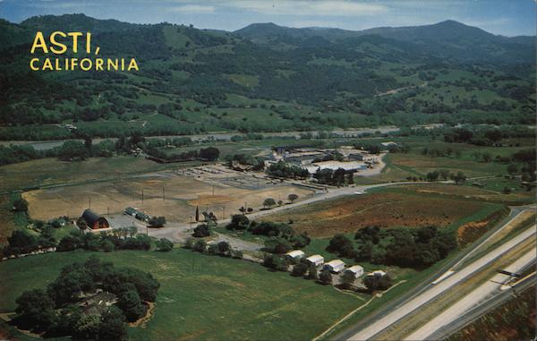 Front: ASTI, CALIFORNIA Back: Aerial of ASTI and its vineyards in the wine country of the Redwood Highway. C18076 by COLOR Mike Roberts BERKELEY 2, CALIF. E. F. Clements, 85 Bluxome St., San Francisco, Calif. 94107