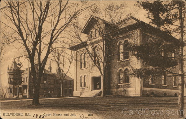 Front: HI BELVIDERE, ILL. 18Court House and Jail. 7891 Boone 111 Back: COMMUNICATIONS THE) PCK M... THE SPACE ABOVE IS RESERVED FOR POSTMARK. ---- sessions >! c Mexican 2 c