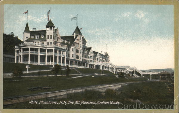 Front: 100 MOMSO White Mountains, N.N. The Mt. Pleasant, Bretton Woods. Back: Pub. by The Atkinson News Co., Tilton, N. H. No. 1206 Write Message here. (2 PT 650 Island Mexican 1c. Foreign 20.