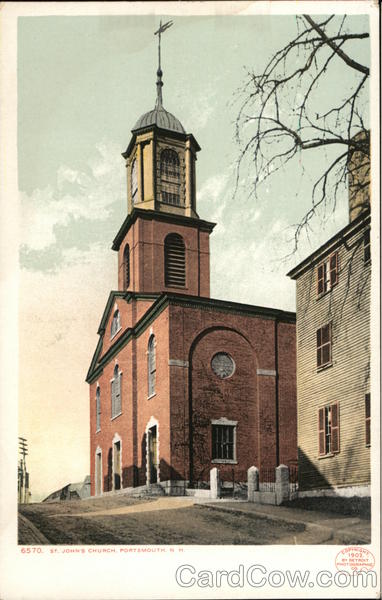 Front: 6570. ST. JOHN'S CHURCH, PORTSMOUTH. N H. COPYRIGHT 1902. BY DETROIT PHOTOGRAPHIC CO. Back: MADE ONLY BY DETROIT PUBLISHING CO. "PHOSTINT"CARD. THIS SPACE MAY BE USED FOR MESSAGE. PT 3 AND CANADA. FOREIGN. TWO CENTS