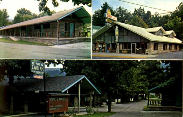 Grade A. Television and Air Conditioning Optional, Modern Units, With or Without Kitchenettes. Modern. Trailer Park in Connection. King's Restaurant Nearby. Private Pool. Located on the beautiful rippling water of LeConte Creek. Mr. and Mrs. Otha King - Proprietors. |