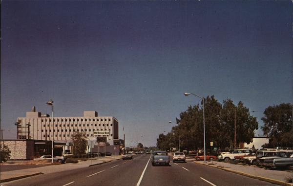 RICHLAND, WASHINGTON A section of the metropolitan area of the Home of the Hanford Atomic Project. The new Fed- eral Building in the background. Color by Dennis Dilley Published only by SMITH-WESTERN CO. TACOMA, WASHINGTON S-75994L2