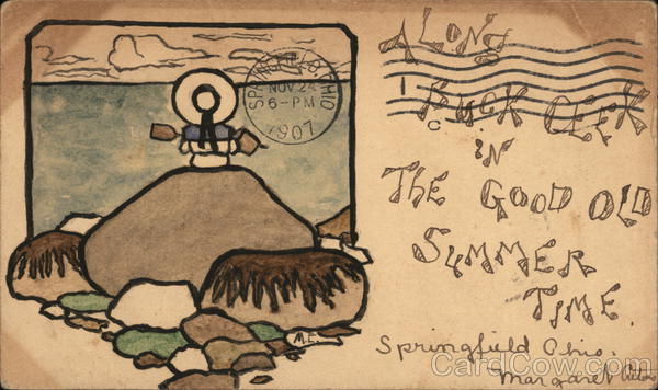 Front: IN NOV 24 I S6-PMO 901 LONG Cafe IN THE GOOD OLD SIMMER -TIME. Springfield Chio. Margaret hetero Back: 924 10 ENIE ELD NOV24 POSTAL CAND 907 B. 730PM PHIO AD STAT 1843 MCKINLEY POS CONE Miss Anna Witner 429 East & nd St. le Middletown Ghis.