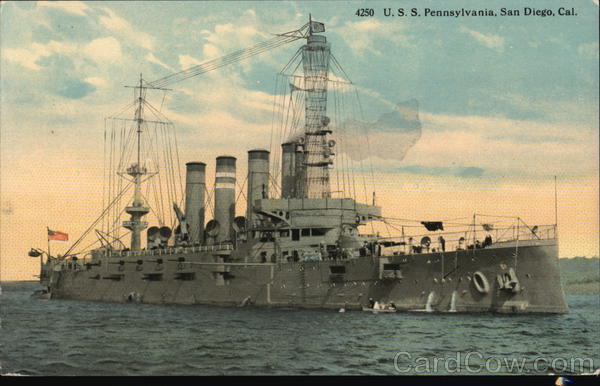 Front: 4250 U. S. S. Pennsylvania, San Diego, Cal. Back: PUBLISHED BY ENO & MATTESON, SAN DIEGO, CAL. CALIFORNIA. 19 پرت EXPOR THE COMPLETION OF THE CANAL SAN DIEGO A-32843 مور and Island Possessions Cuba, Canada and For Foreign.