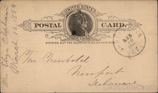 Blank United States One Cent Postal Card
