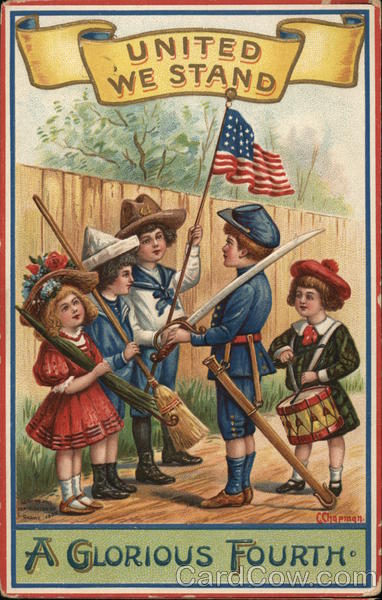 Front: CAINTING ONLY COPYRIGHTED BY GARRE 1909 WE STAND CChapman. A GLORIOUS FOURTH Back: 8991S N FA мама July 4, '09 Donald Vartwy с