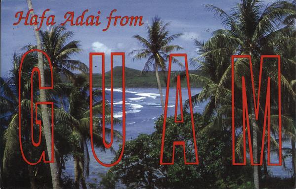 Front: Hafa Adai from PM if Back: HAFA ADAI (HELLO) FROM GUAM View from the Marine Laboratory of the University of Guam looking southwest along the shore of the Pacific Ocean. R&J A Guam Production 295 Printed by Pacific Color Press, GUAM HERE