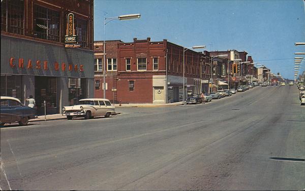 Front: DRUCS CHASE CHACE UPTO AAA.MA DRUGA SO FARBENES Back: Pub. by Southern Post Card Co., P.O. Box 306, Goodlettsville, Tenn. MAIN STREET HARRIMAN, TENN. P36766 by COLOURPICTURE PUBLISHERS, INC., Boston 15, Mass., U.S.A. Color by R. E. Calonge Te