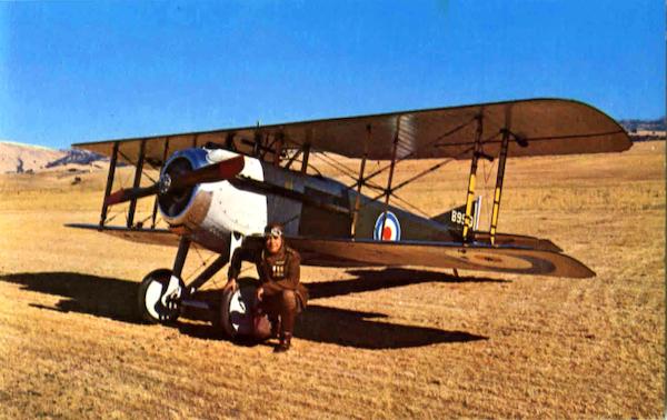 1916 Spad VII French single seater WWI Scout. 150 HP Hispano-Suiza V-8 water cooled engine. Vickers machine gun. Speed 124 MPH. Gross WT., 1632 Lbs. Ceiling 18,000. Original aircraft owned & restored by Rick Helicopters, Inc., 931 American St., San Carlos, Ca. 94070. |