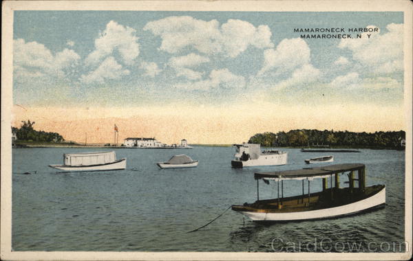 Front: BAD MAMARONECK HARBOR MAMARONECK, NY Back: 46127-PUB BY F G, KOCH AND H. E. FOSHAY. COMMERCIALCHROME Post Gard TWO CENTS
