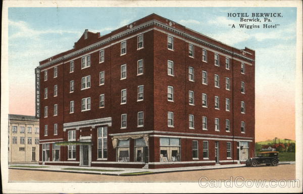Front: HOFWJBWXX-UX TI 11 11 DE DEDIC 9 8 HOTEL BERWICK, Berwick, Pa. "A Wiggins Hotel" T Back: E. C. KROPP CO., MILWAUKEE 11900 Co