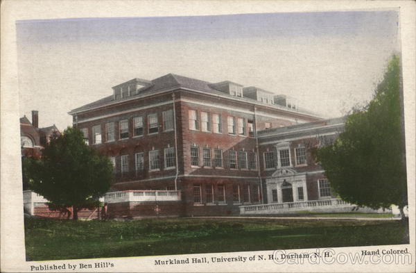 Front: Published by Ben Hill's 3111 memang memum ut. Murkland Hall, University of N. H., Durham, N. H. 14- Hand Colored Back: REGUS PAT OFF EST 1904 FRANK SWALLOW INC. 1911 EXETER N. H. CO. INC POST GARD 4. HERE