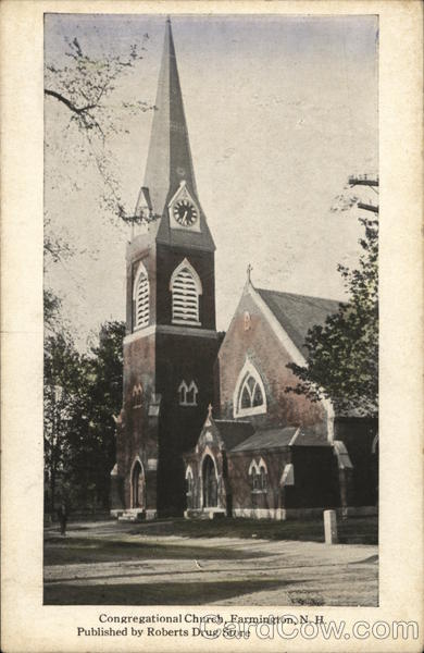 Front: Congregational Church, Farmington, N. H. Published by Roberts Drug Store Back: COMMUNICATION XXS PAY OF? EST 1904 INC. 1911 ONA CL PIC18 • n рть Domestic