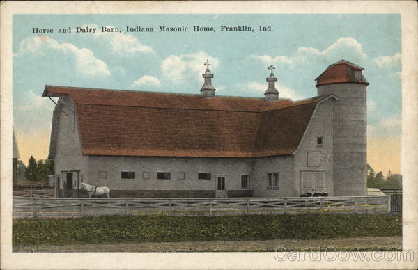 Front: Horse and Dairy Barn, Indiana Masonic Home, Franklin, Ind. tul 000 TI Back: E. C. KROPP CO., MILWAUKEE 24244N Co 300