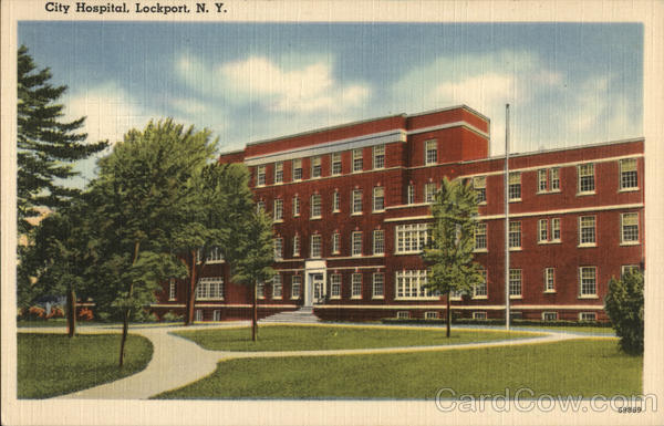 Front: City Hospital, Lockport, N. Y. 69869 Back: MADE IN U. S. A "TICHNOR QUALITY VIEWS" REG. U.S. PAT, OFF. MADE ONLY BY TICHNOR BROS., INC., BOSTON, MASS. PLASTER NEWS COMPANY, LOCKPORT. N. Y.