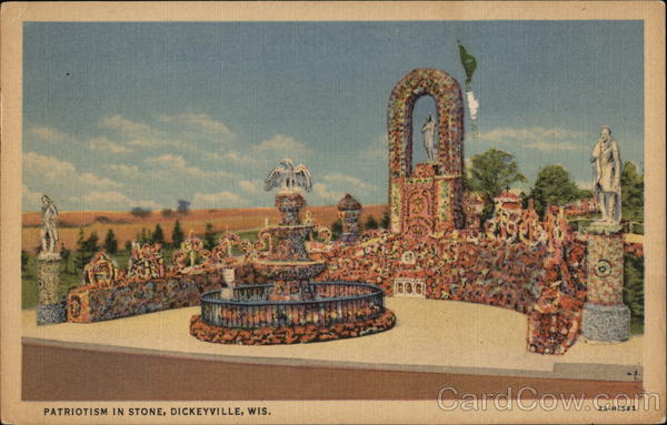 | Many unique colorful shrines have been built on the Church grounds at Dickeyville, Wis. - village of 250 people. Pebbles, stones, shells and corals from all parts of the world were collected by a priest and built into these beautiful monuments dedicated to religion and patriotism. |