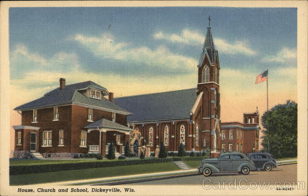 8A-H2327 House, Church and School, Dickeyville, Wis.