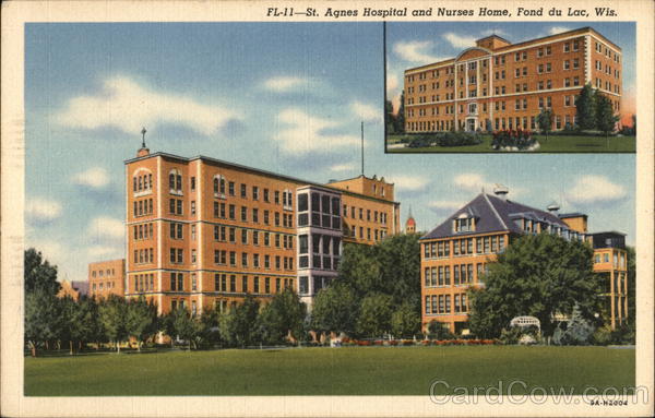 Front: FL-11-St. Agnes Hospital and Nurses Home, Fond du Lac, Wis. LL LE 1 T T EL LE LE EGE ECE EFEE BEEE EF EGEE E 9A-H2004 Back: FOND DU LAC NEWS CO., FOND DU LAC, WIS. کے لئے
